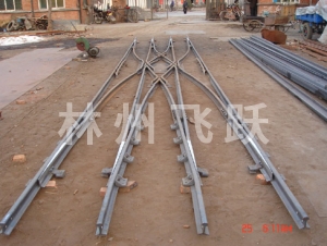 鐵路道岔中,常見的是普通單開道岔。鐵路道岔廠家林州飛躍鐵路道岔告訴您,它由轉轍器、連接部分、轍叉及護軌三個單元組成。轉轍器包括基本軌、尖軌和轉轍機械。 當機車車輛要從A股道轉入B股道時,操縱